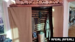 На всякий случай проверили соседний стенд передовиков комбикормового завода, но и там фото Анатолия Марченко не нашлось. Что не удивительно. Зато в соседнем зале угол занимает муляж блиндажа с портретом Сталина.